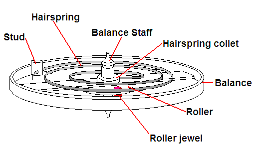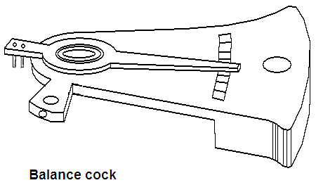 To remove the balance you must first remove the balance cock, to do so first remove the screw then place the  blade of a screwdriver into the notch at the back of the cock and with a twisting motion carefully pry the balance cock away from it’s seat on the pillar plate.  Then to remove the balance from the cock you must turn the whole assembly upside down and lay it flat on the bench, then loosen the hairspring stud screw and carefully lift the balance complete off the cock, some movements have one regulator pin that is bent at it’s end or made to cover the hairspring and keep it from coming out of the pins, for this type you must turn the regulator pin away so the hairspring can be lifted out of the regulator pins.